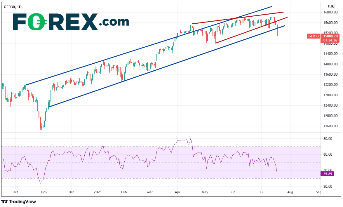 德国DAX跌近3%,下破上升楔形和上升通道