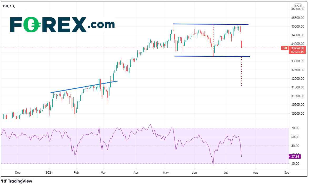 道指跳空下跌;当天波幅近1000点;突破33271后剑指31625